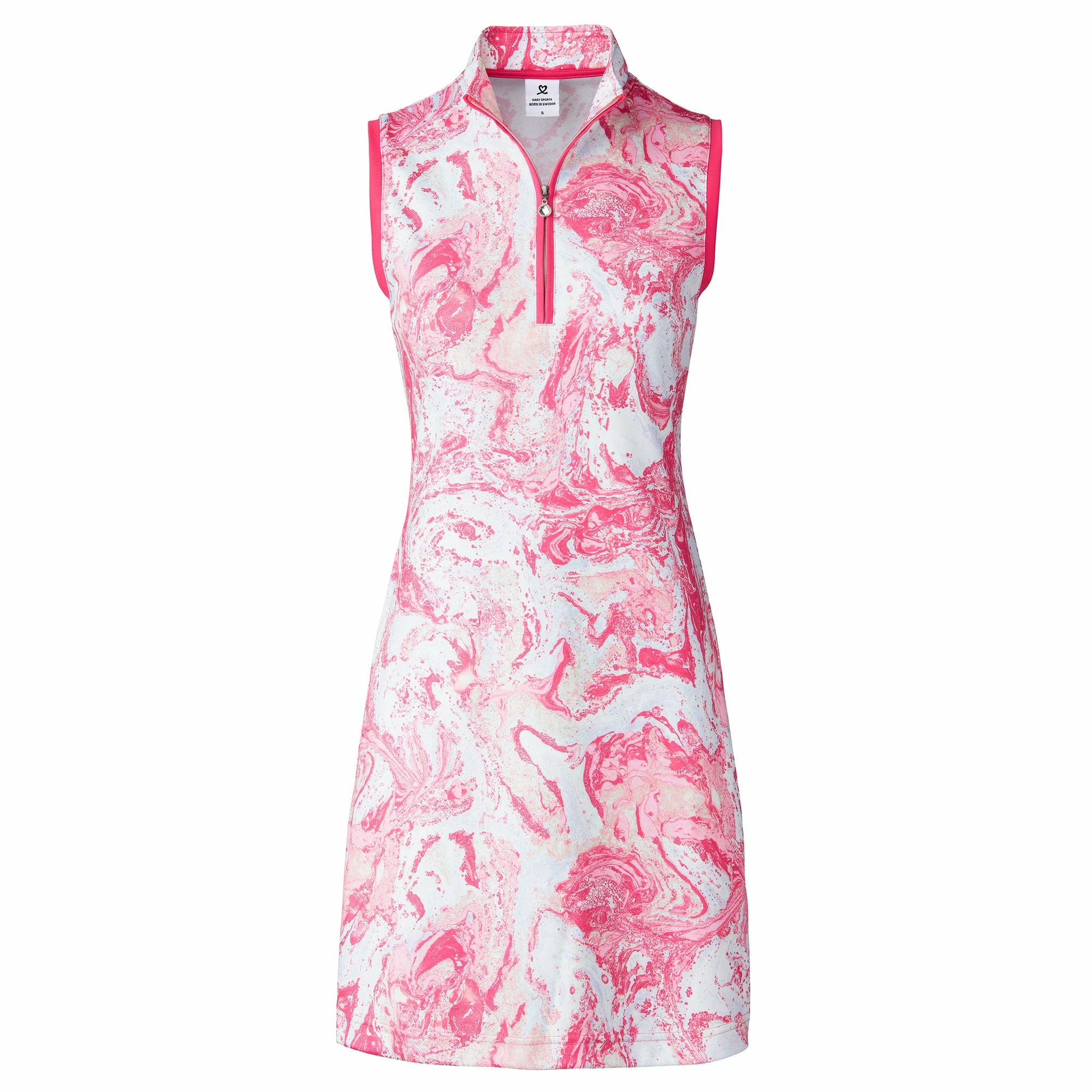 Get a stylish dress for the course with the Daily Sports Adelina Golf Dress. The Adelina features a quick drying fabric with a beautiful marble inspired print and decorative banding around the arm holes, zip and collar in a Regular fit that will have you looking good during your round. This dress is built with high tech breathable fabrics that has excellent ventilation and rapid moisture absorption that will keep you cool, dry and comfortable. The fabric dries quickly and will not fade from sunshine.