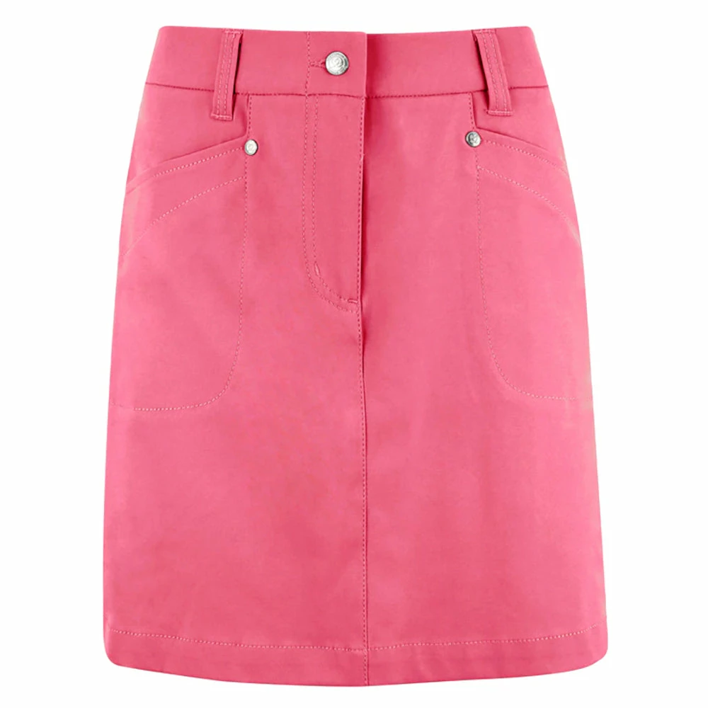 Get a customer favorite with the Daily Sports Lyric Golf Skort. The Lyric skort features a classic, straight cut with an elastic waistband and buttons for a secure and comfortable fit. There are two front top loading pockets and two back pockets that provide plenty of storage space for balls, tees, scorecard and glove. The high-tech fabric is water resistant, quick drying and breathable to keep you dry and comfortable during your round.