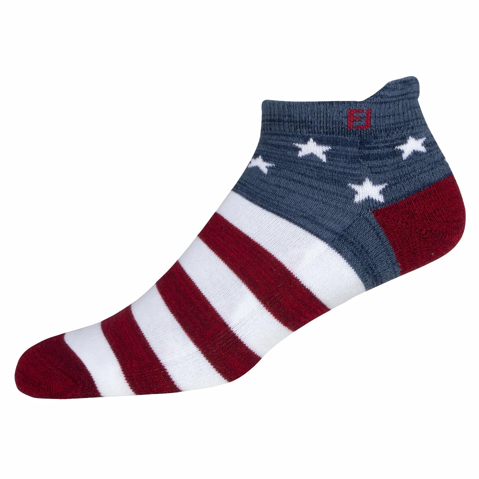 These FootJoy ProDry Patriotic Mens Socks are super comfy with extra cushion. Made with seam on the toes for a comfortable fit and durability. Also, with reinforced heels which provides a cushion for your feet. Show you patriotism with these cute patriotic star socks. These patriotic socks come in both crew and tab.