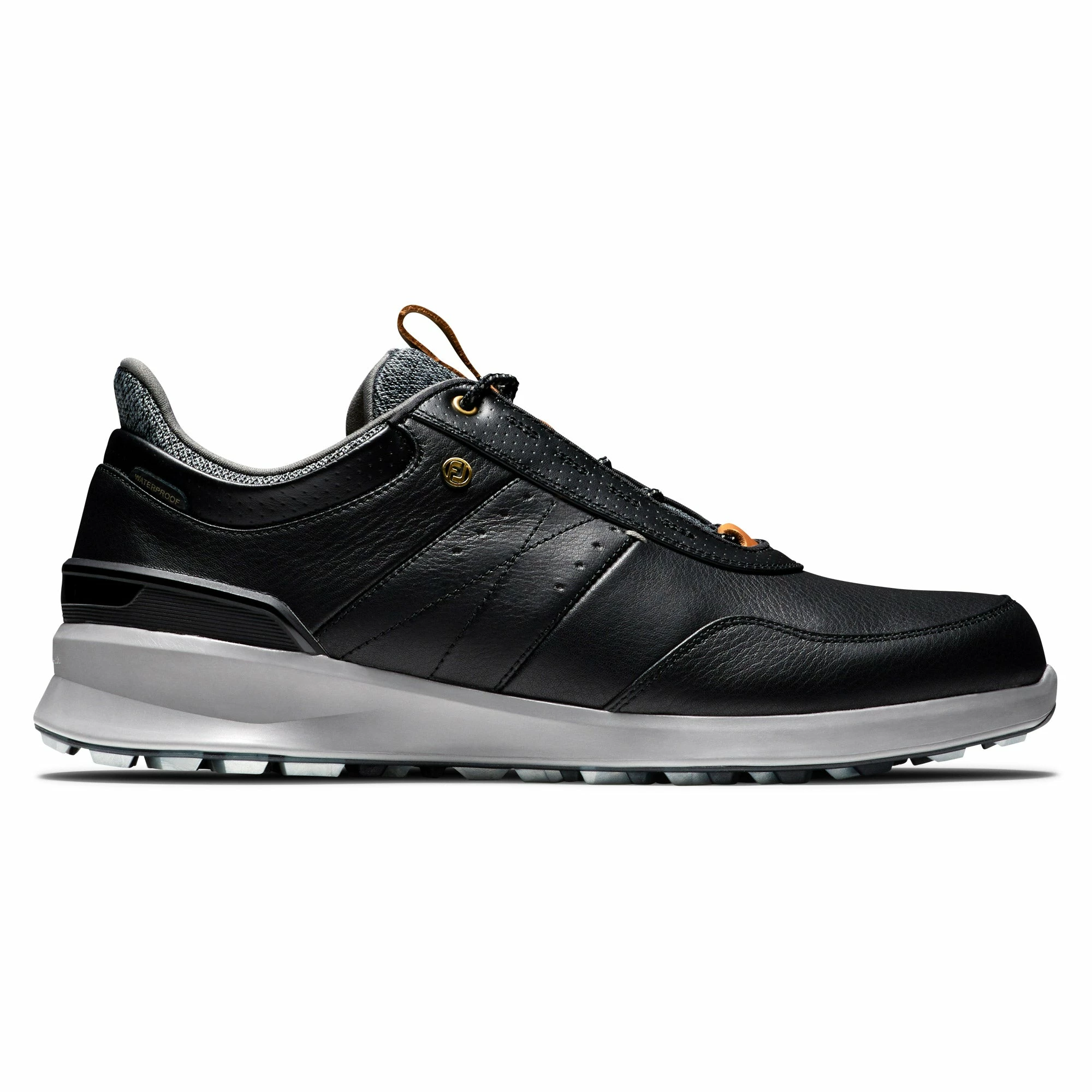 Get out of this world comfort with the FootJoy Stratos Golf Shoe. The Stratos is built with lightweight StratoFoam that is a proprietary cushioning system that forms a unique compound blend that allows each shoe to absorb shock and return energy that will help reduce foot fatigue after a round of golf. This shoe features a VersaTrax+ outsole that is perfect for on course performance with a wear to the course versatility and translucent rubber traction elements for a high end look. The Plush NappaLuxe leather upper provides 100 percent waterproof protection and luxurious comfort.