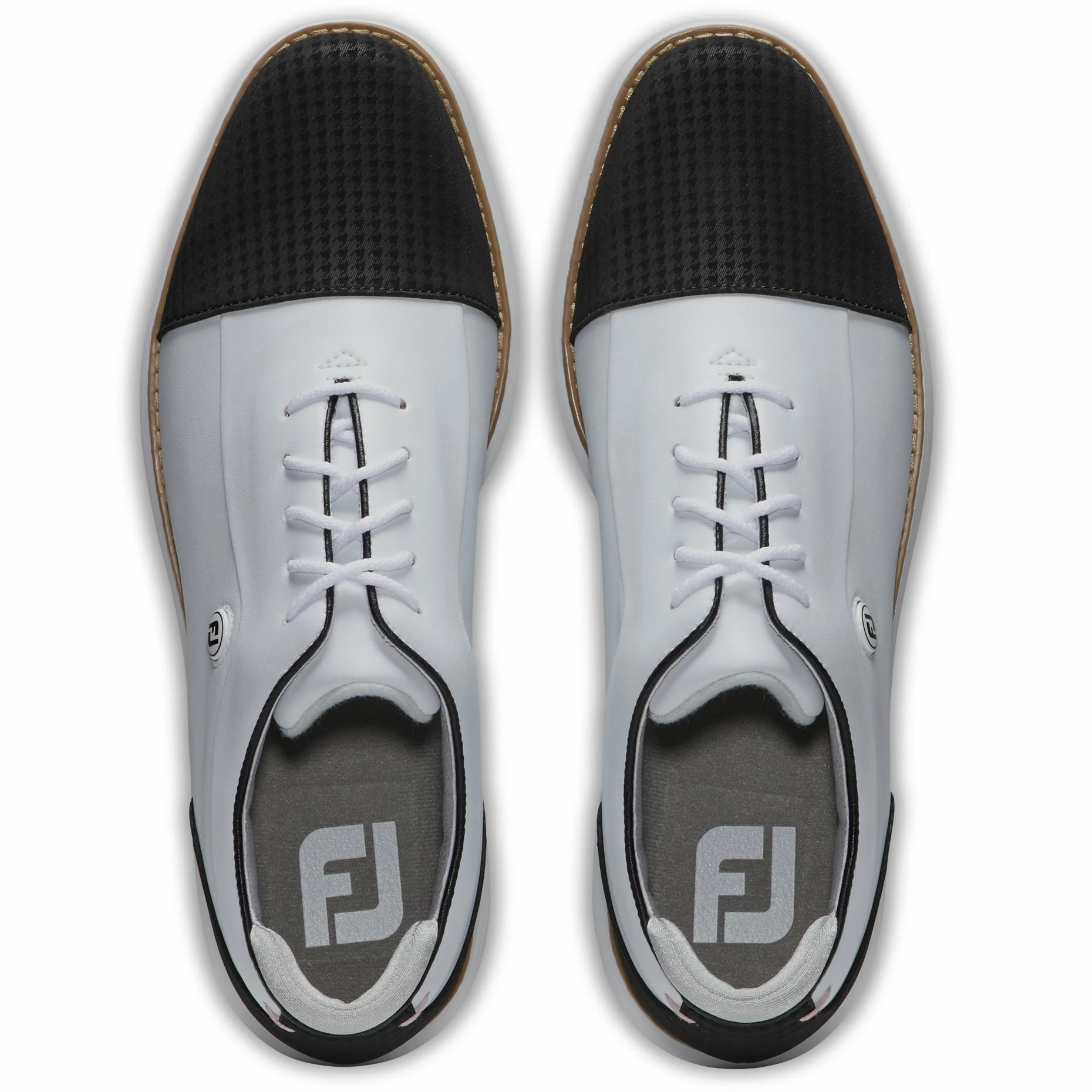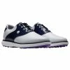 Get traditional styling that offers all-day comfort with the FootJoy Traditions Cap Toe Golf Shoes. These shoes are built with a soft, premium synthetic upper and foam midsole that provides a lightweight, comfortable fit. There is a molded high density EVA Fit-Bed that provides added comfort underfoot and the Madison last provides a standard fit in the heel and instep combined with a slightly shallow and square forefoot with added depth. The Traditions Cap toe features the Fast Twist 3.0 cleat system with Pulsar spikes which provide improved comfort while securing each cleat with consistent torque for even more comfort. Finally, the contrasting color on the toe adds a stylish look so you will not only be comfortable but also look good out on the course.