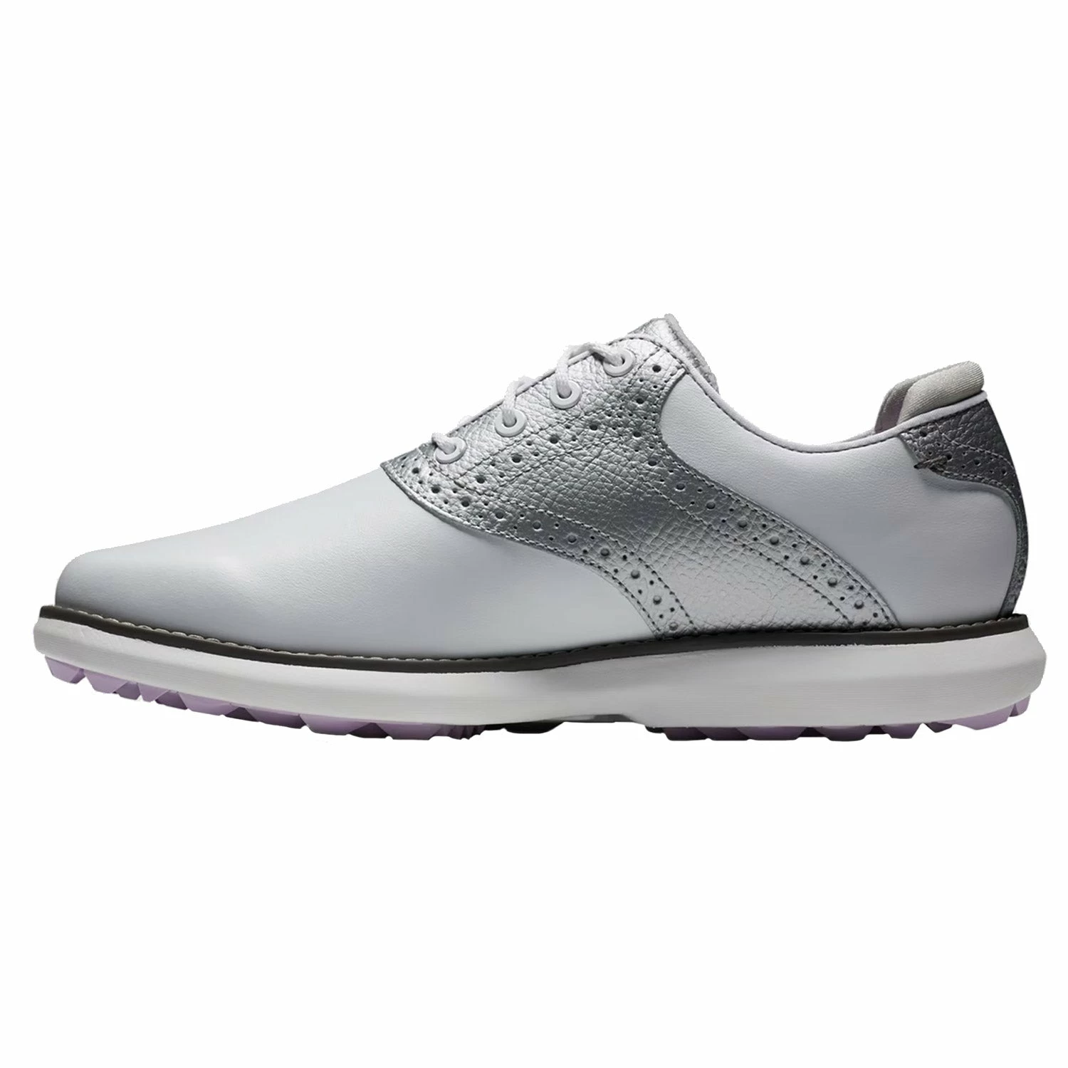 The FootJoy Traditions Spikeless Womens Golf Shoes are known for delivering all day comfort in a classic golf package. The foam midsole provides lightweight comfort for a flexible and comfortable round and works well with the EVA Fit-Bed that keeps your feet comfortable from the first tee to the 19th hole. The fashionable full grain leather upper adds to the comfort and breathability and the Traditions is also 100 percent waterproof to keep your feet dry during every round.