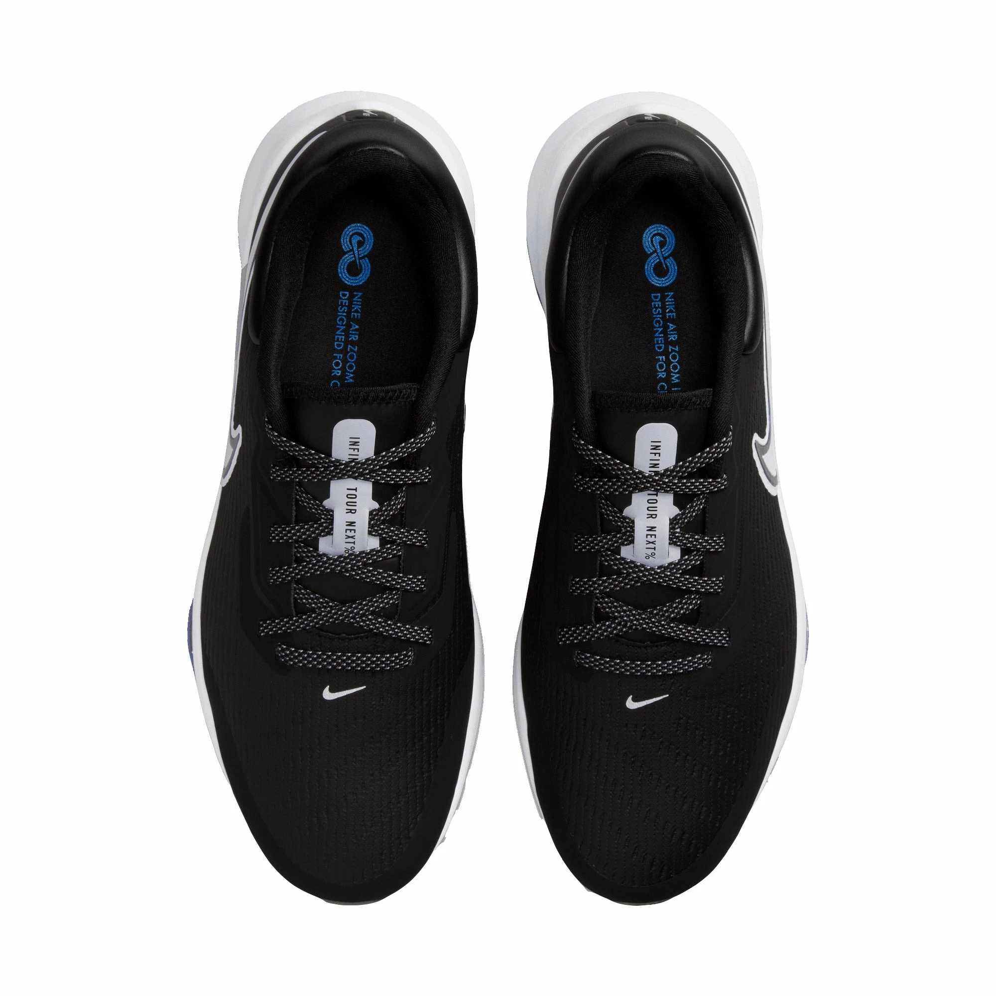 Redefined from user feedback, the Nike Air Infinity Tour NEXT% Mens Golf Shoe is ready to go beyond your expectations. Loaded with features and improvements, this golf shoe is crafted to provide more room for your foot with an increase in overall volume. Not only does the material hug and support you, but it breathes like a dream. Added traction creates a better energy transfer throughout your swing, while reducing slippage on the green with the addition of two spikes on the forefoot and two spikes on the heel.