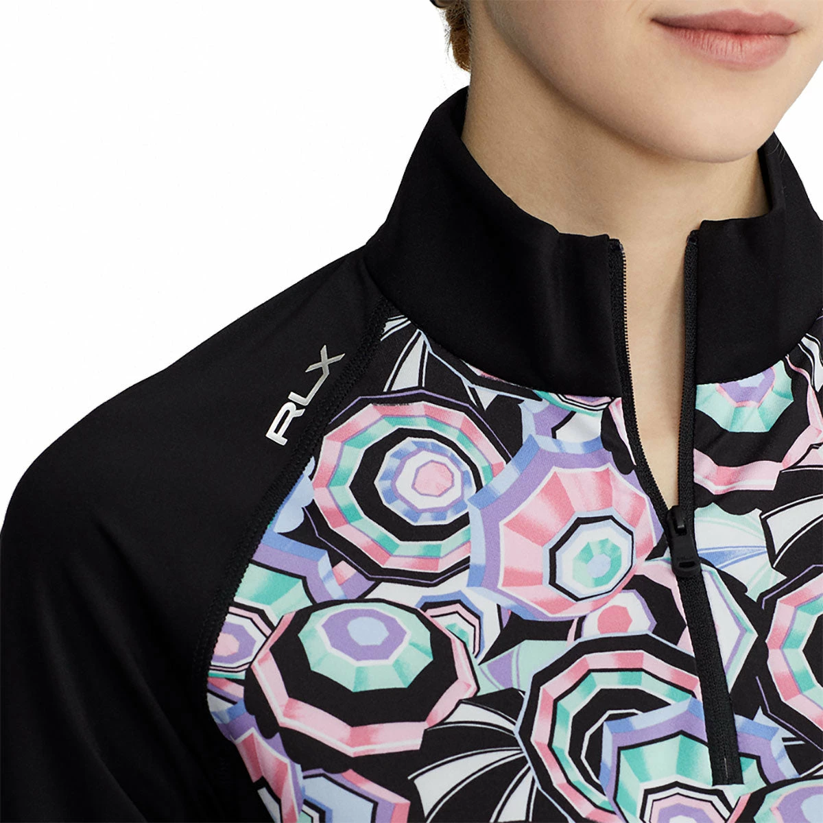 The RLX Ralph Lauren Printed Airflow 1/4 Zip makes it easy for women to layer up on those brisk course mornings, or to take shelter from the bright sunny rays. This top is crafted from a lightweight, breathable jersey with a touch of stretch that allows you to swing with ease. It features a mock neck, quarter zip placket so you can easily adjust your coverage as the weather changes, and a back yoke zip pocket so you can store your small golf essentials.