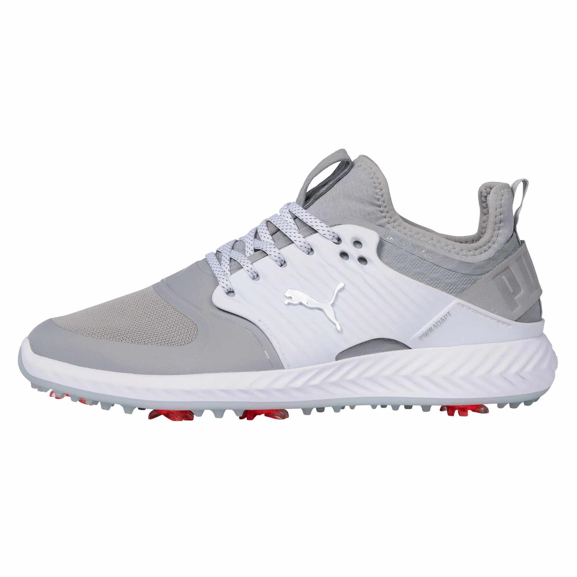 Get outstanding comfort and a tailored fit with the Puma Ignite PWRAdapt Caged Golf Shoe. This shoe is built with a mesh bootie that provides improved 360 degree fit, comfort and support and the PWRCage TPU saddle provides excellent support and stability during your swing. There is an ultra-thin TPU frame that is placed in high stress areas on the upper for lightweight support and added stability and the IgniteFoam midsole will provide golfers with energy return, responsive comfort, stable cushioning and superior comfort right out of the box. You will get excellent traction on the course with the PWRAdapt sole system that uses a 3-dimensional traction and cushioning.